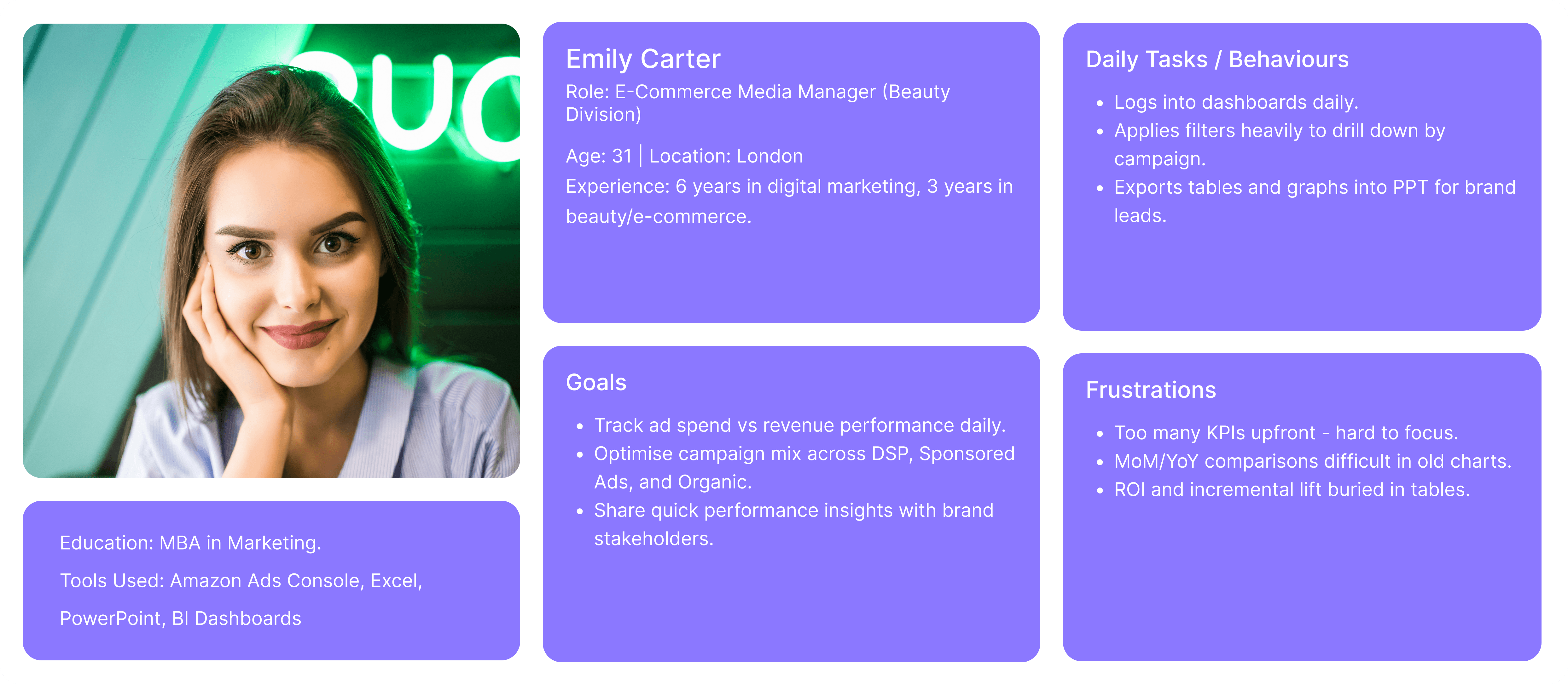 Introduced 4 clear KPI cards (Revenue, Views, Spend, ROAS).